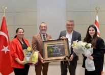 Kabulde ziyaret anısına Cumhurbaşkanı Erhürman’a plaket ve hediye takdimi yapıldı.