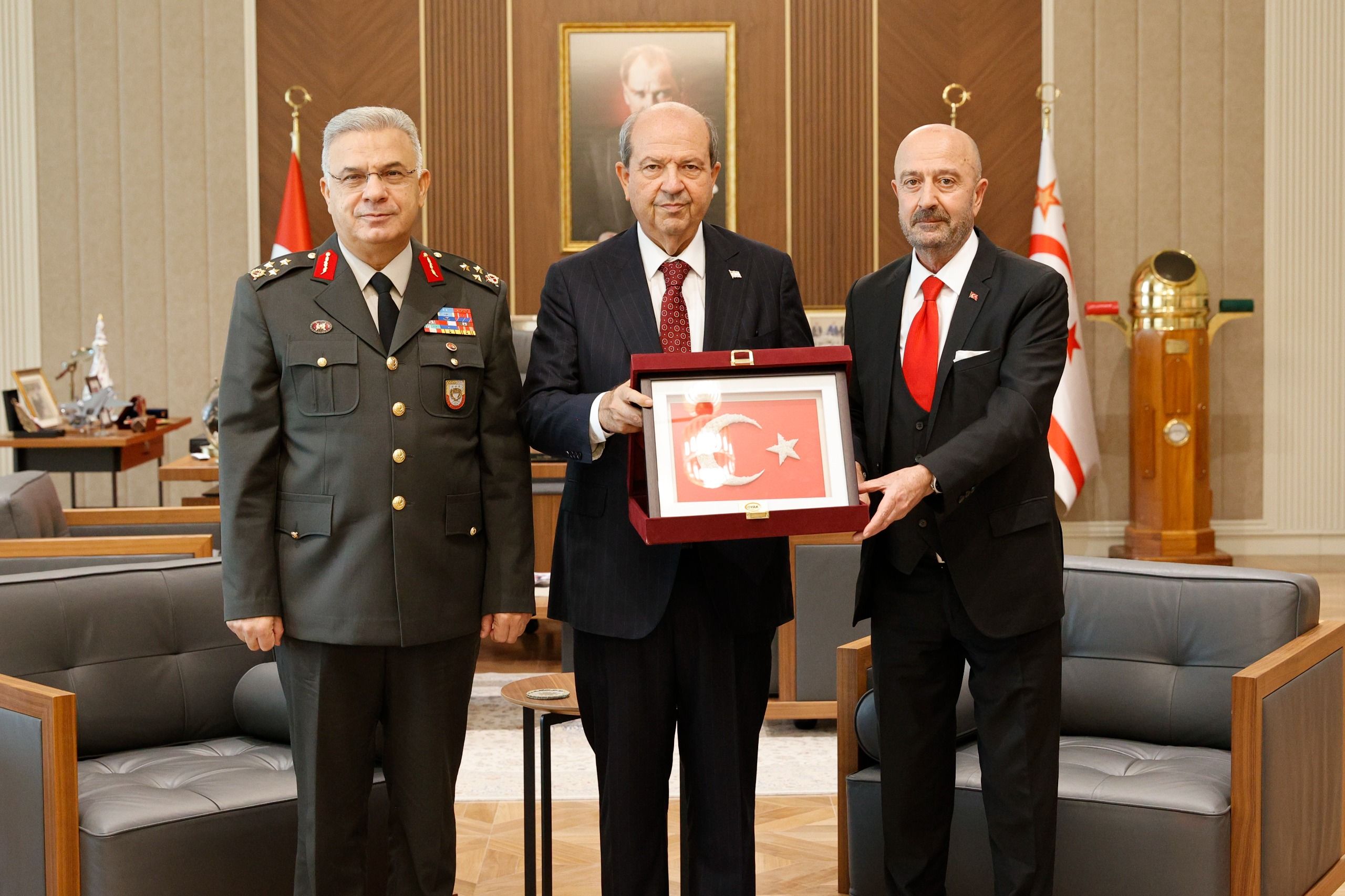 Cumhurbaşkanı Ersin Tatar, Kıbrıs Türk Barış Kuvvetleri (KTBK) Komutanı Korgeneral Sebahattin Kılınç ve emekli Korgeneral Zekai Aksakallı’yı kabul etti