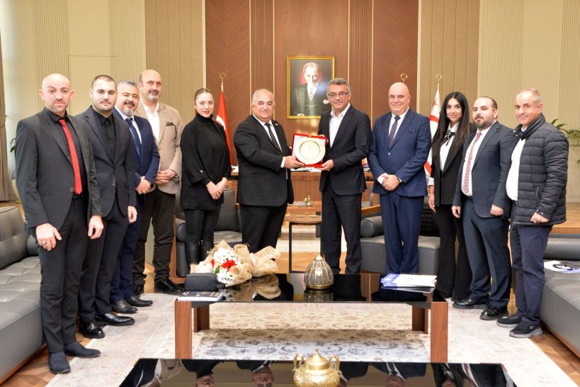 15 Kasım Üniversitesi Rektörü Prof. Dr. Mustafa Menekay da, Cumhurbaşkanı Erhürman’a görevinde başarılar diledi ve ziyaretin anısına üniversitenin plaketini takdim etti.