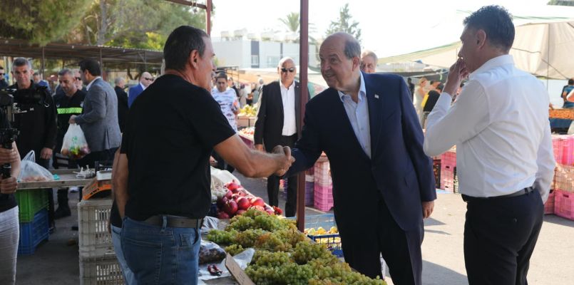 Cumhurbaşkanı Ersin Tatar, Gönyeli’de salı günleri kurulan pazarı ziyaret etti.