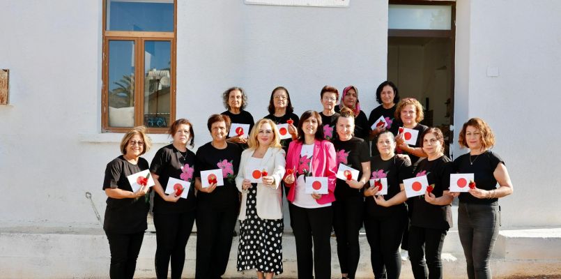Cumhurbaşkanı Ersin Tatar’ın eşi Sibel Tatar, Çatalköy ve Cihangir’de kadın kursiyerlerle birlikte Medoş Lalesi yaptı