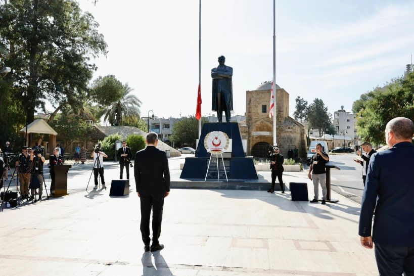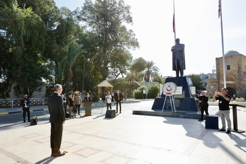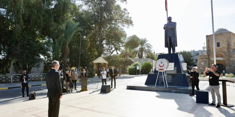 Cumhurbaşkanı Tufan Erhürman, Cumhuriyet Meclisi’nde düzenlenen ant içme töreninin ardından Lefkoşa Atatürk Anıtı’na çelenk sundu, anıt özel defterini imzaladı.