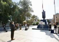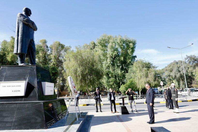 Cumhurbaşkanı Tufan Erhürman, Cumhuriyet Meclisi’nde düzenlenen ant içme töreninin ardından Lefkoşa Atatürk Anıtı’na çelenk sundu, anıt özel defterini imzaladı