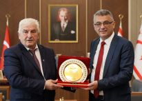 TÜRK-SEN Genel Başkanı Arslan Bıçaklı, Cumhurbaşkanı Tufan Erhürman’a görevinde başarılar diledi ve ziyaret anısına Cumhurbaşkanı Erhürman’a hediye takdimi yaptı.