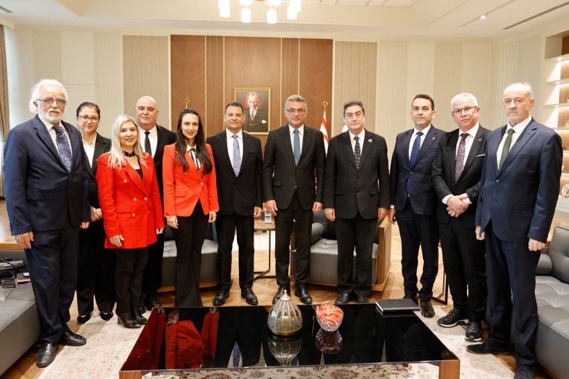 KÜB Başkanı Vehbi’ye kabulde, KÜB Genel Sekreteri Prof. Dr. Serdar Yurtsever’in yanı sıra, yönetim kurulu üyeleri; Prof. Dr. Erbuğ Çelebi, Prof. Dr. Gökçe Keçeci, Prof. Dr. Mustafa Menekay, Prof. Dr. Behiye Çavuşoğlu,