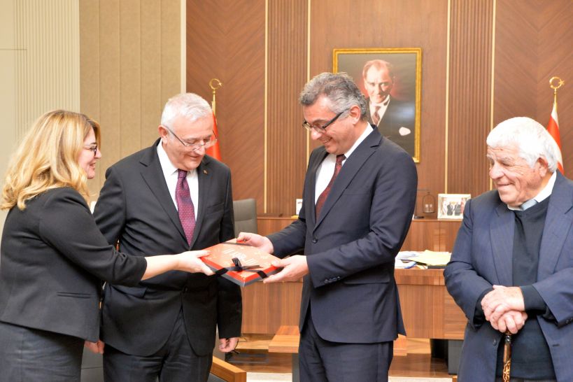 Türk Tarih Kurumu Başkanı Prof. Dr. Yüksel Özgen, Cumhurbaşkanı Tufan Erhürman’a görevinde başarılar dileyerek ziyaret anısına hediye takdim etti.