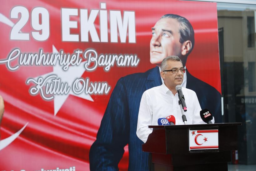 Cumhurbaşkanı Tufan Erhürman konuşmasına, ‘29 Ekim Cumhuriyet Bayramı Türkiye Cumhuriyeti’ne ve Kuzey Kıbrıs Türk Cumhuriyeti’ne kutlu olsun’ diyerek başladı.