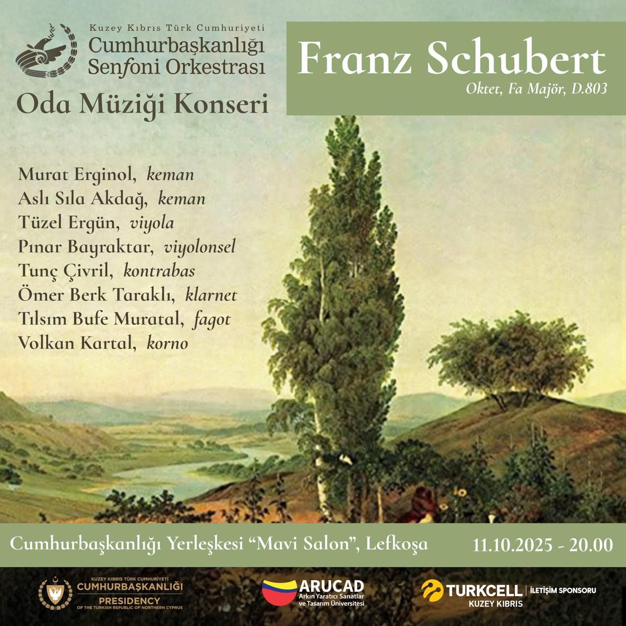 KKTC CSO, Schubert Oktet Konseri ile Cumhurbaşkanlığı Büyük Salon’da sanatseverlerle buluşuyor