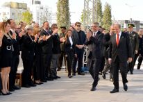 Tören kıtasının iki cumhurbaşkanı tarafından teftişinin ardından, Cumhurbaşkanı Erhürman, Ersin Tatar’ı uğurladı.