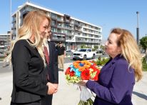 Cumhurbaşkanlığı'nda yer alan devir teslim töreni için Cumhurbaşkanlığı'na gelen Tufan Erhürman ve eşi Nilden Bektaş Erhürman'ı, Ersin Tatar ve eşi Sibel Tatar karşıladı. Sibel Tatar, Nilden Erhürman'a buket takdim etti.