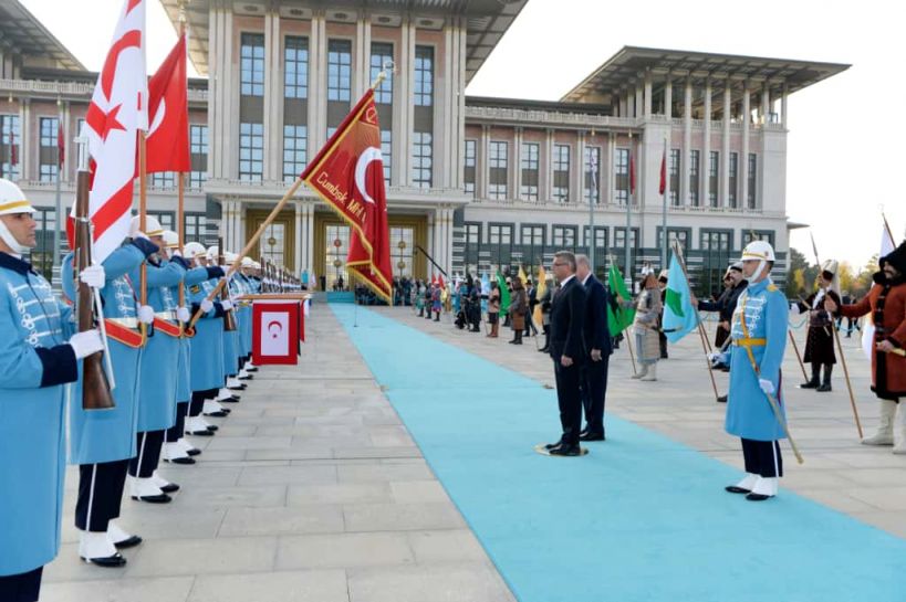 Türkiye Cumhuriyeti Cumhurbaşkanı Erdoğan, Cumhurbaşkanı Erhürman’ı resmi törenle karşıladı