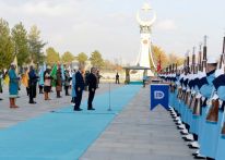 Erhürman, tören kıtasını, "Merhaba asker" diyerek selamladı. Törende, tarihte kurulan 16 Türk devletini temsil eden bayraklar ve askerler de yer aldı.