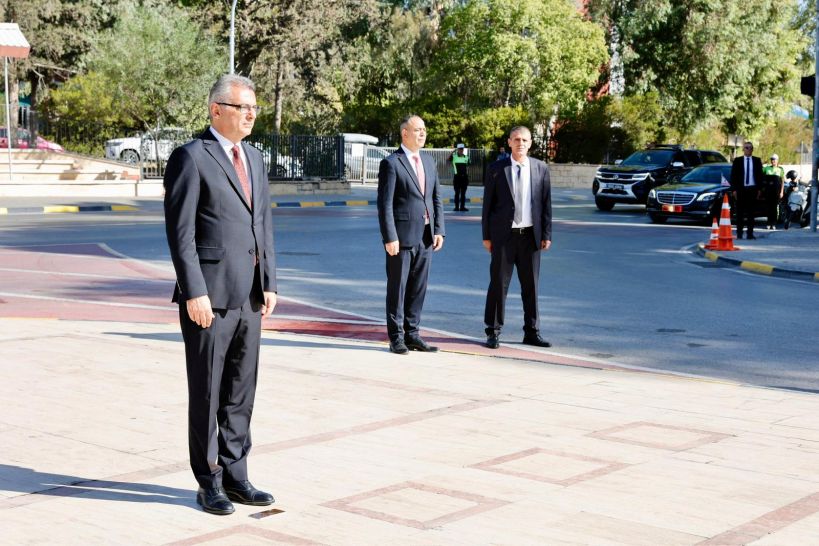 Following his presidential oath taking ceremony at the Parliamentary General Assembly, President Tufan Erhürman paid his respects at the Atatürk Monument in Lefkoşa, where he laid a wreath and signed the Special Memorial Book.