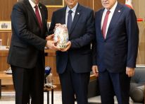 Görüşme öncesinde Azerbaycan ve Türkiye heyetleri, Cumhurbaşkanı Ersin Tatar’a anı hediyesi takdim etti.