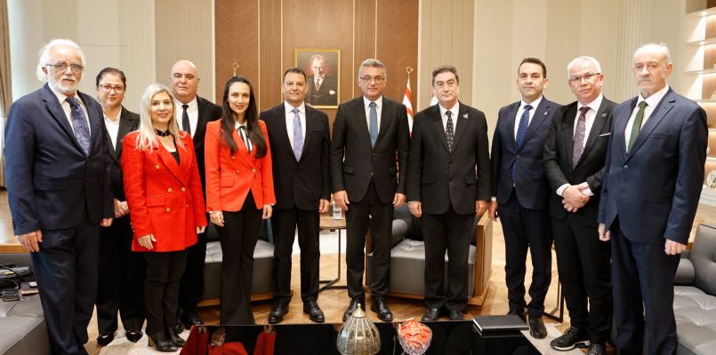 KÜB Başkanı Vehbi’ye kabulde, KÜB Genel Sekreteri Prof. Dr. Serdar Yurtsever’in yanı sıra, yönetim kurulu üyeleri; Prof. Dr. Erbuğ Çelebi, Prof. Dr. Gökçe Keçeci, Prof. Dr. Mustafa Menekay, Prof. Dr. Behiye Çavuşoğlu,