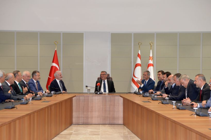 Cumhurbaşkanı Tufan Erhürman, Kuzey Kıbrıs Türk Cumhuriyeti’nin 42’nci Yıl Dönümü vesilesiyle Cumhuriyet Meclisi Futbol Takımı ile dostluk maçı yapmak amacıyla ülkeye gelen, 25. Dönem Giresun Milletvekili Adem Tatlı başkanlığındaki, Türkiye Büyük Millet Meclisi (TBMM) Futbol Takımı heyetini kabul etti.