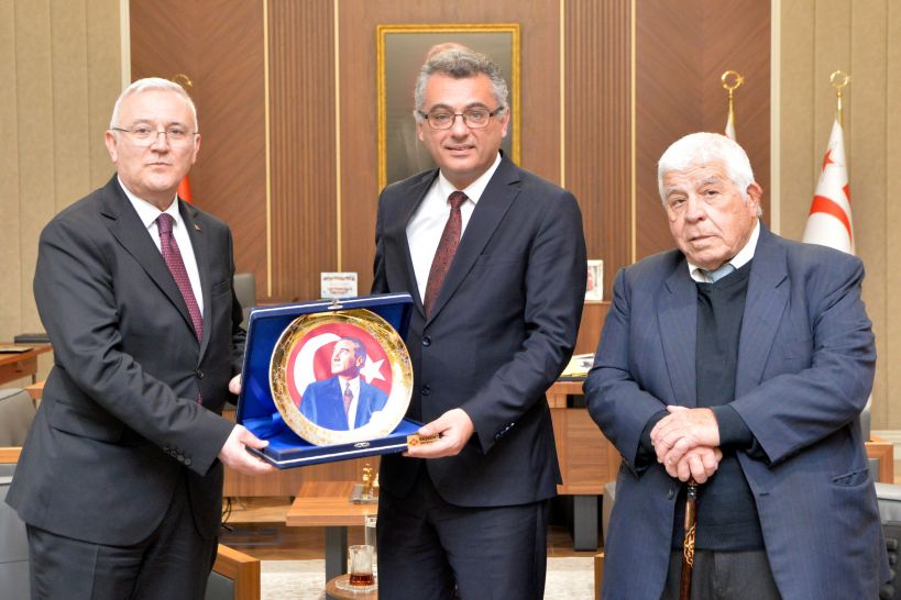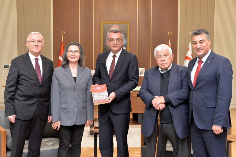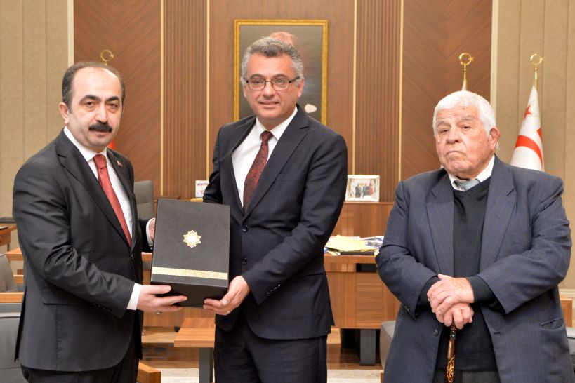 Türk Tarih Kurumu Başkanı Prof. Dr. Yüksel Özgen, Cumhurbaşkanı Tufan Erhürman’a görevinde başarılar dileyerek ziyaret anısına hediye takdim etti.