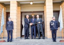 İki lider ve BM Genel Sekreteri’nin Kıbrıs Özel Temsilcisi ve UNFICYP Misyon Şefi Khassim Diagne, girişte birlikte görüntü verdi.