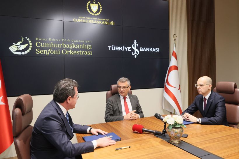 KKTC Cumhurbaşkanlığı Senfoni Orkestrası (KKTC CSO) ile Türkiye İş Bankası ana sponsorluk iş birliği protokolü imza töreni bu sabah Cumhurbaşkanlığı’nda gerçekleşti.